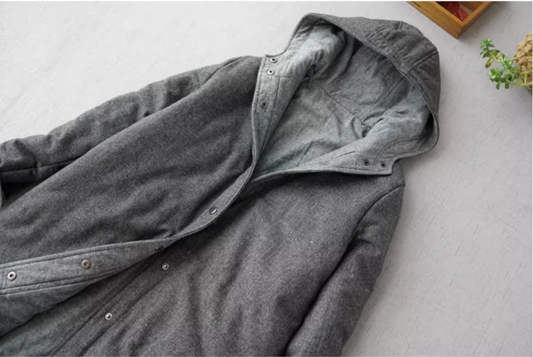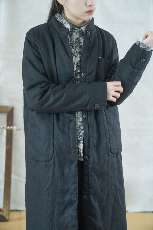 3色展開◇秋冬に大活躍◇スタンドカラー リネン中綿 ロングコート◇
