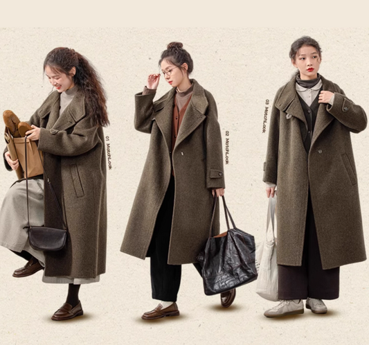 4色展開△ゆったりドロップショルダーダブルフェイスウール コート△