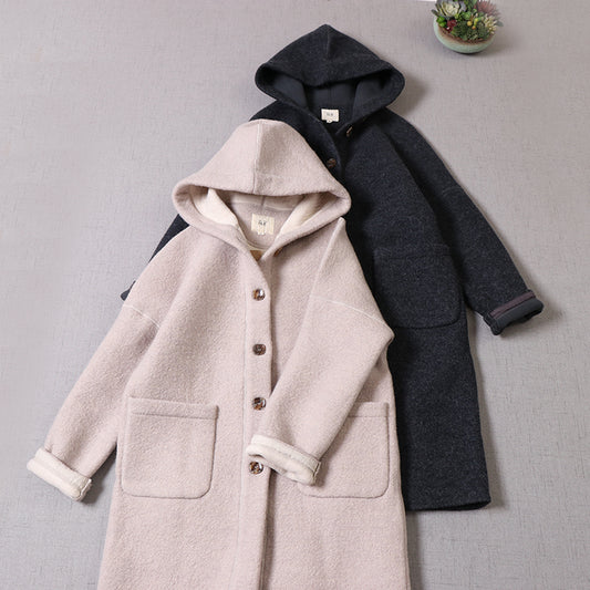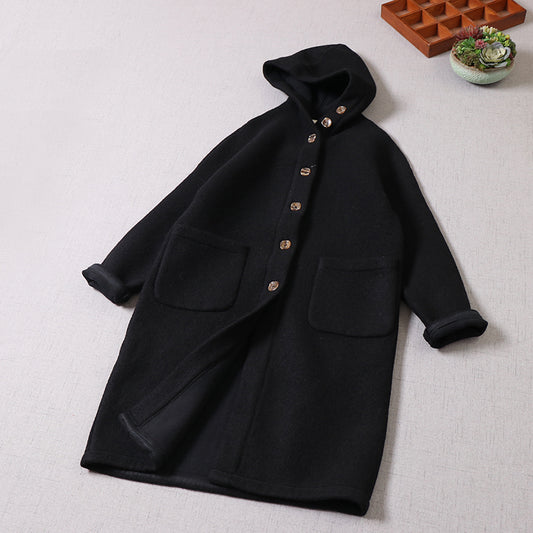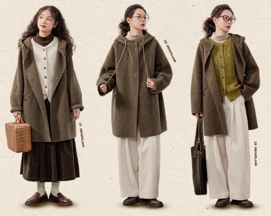 4色展開△ダブルフェイスウール ゆったりドロップショルダー フーディー ロングコート△
