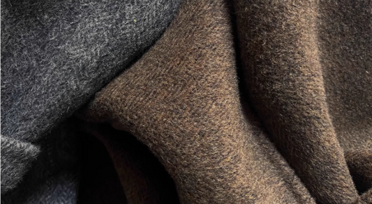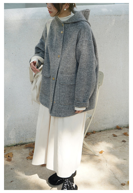 ダブルフェイスウールで防寒性もバッチリ△オーストラリア産メリノウール×シルク×アンゴラ生地 ドロップショルダーフードジャケット△
