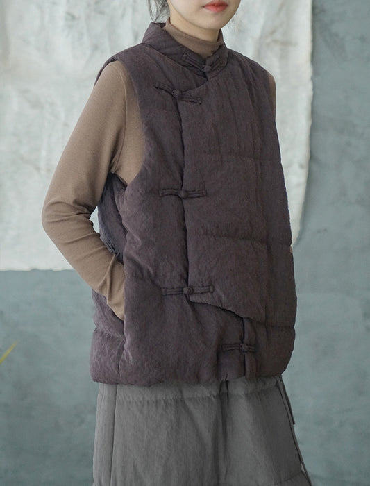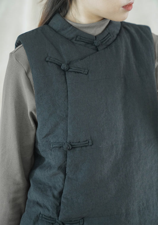 4色展開◇軽量暖か◎オリエンタルデザイン コットン中綿入りスタンドカラーベスト◇