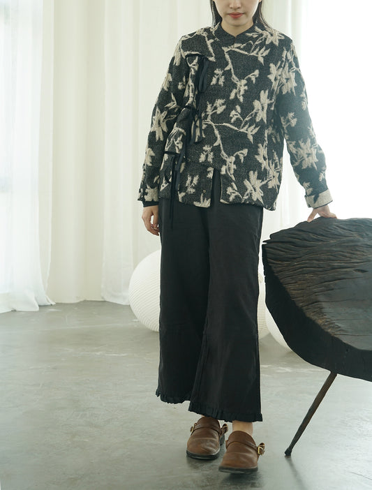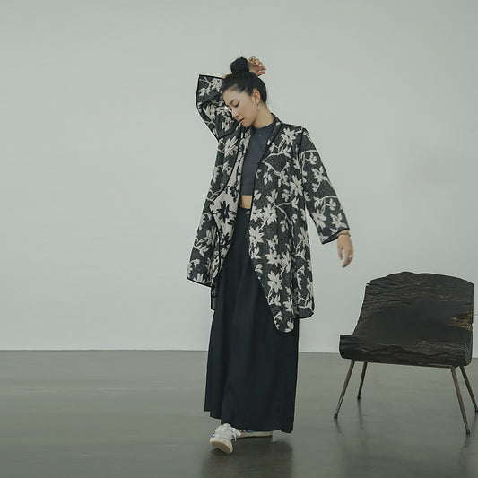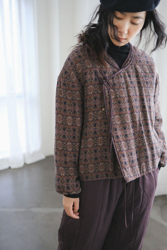 アブストラクトなフラワーパターンが美しい◇総柄ジャガード オリエンタル ジャケット◇