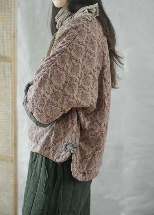 落ち着いたエスニックパターン◇暖か ダブルフェイスコットン スタンドカラー 中綿ジャケット◇
