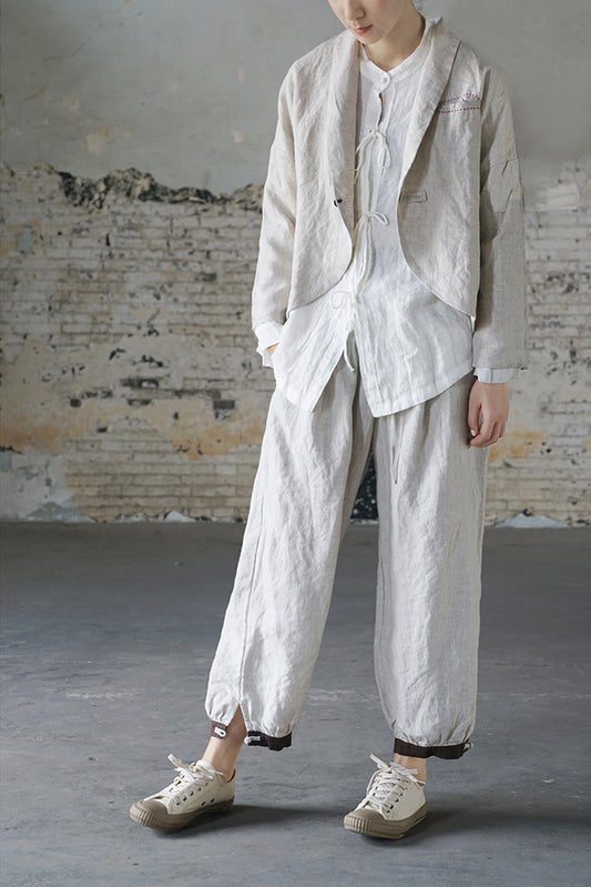 4色展開△ハンドステッチが可愛い▽ショールカラーリネンドロップショルダージャケット△