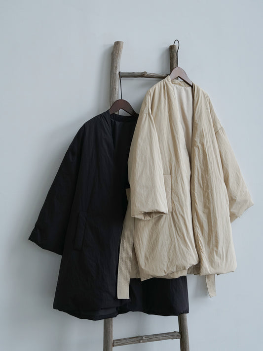 2色展開◇ハンドステッチと切り替えデザインがポイントに◇コットン中綿羽織り◇