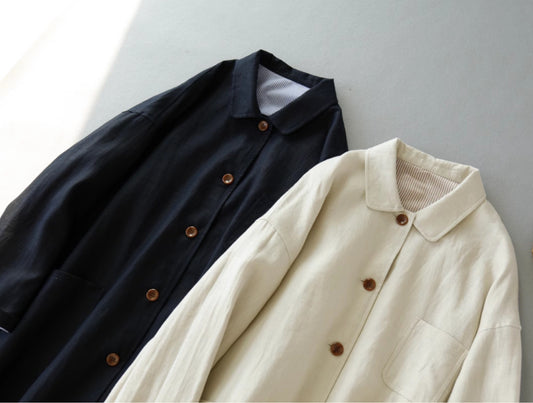 2色展開◇ゆったり後染め ドロップショルダー リネンコート◇
