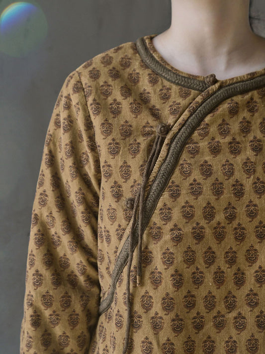 ◇ブロックプリント調が可愛い◇コーデュロイ裏ボア オリエンタルプルオーバー◇