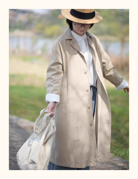 ゆったりシルエット◇秋冬厚手リネンコットンラグランスリーブコート◇裏地付き