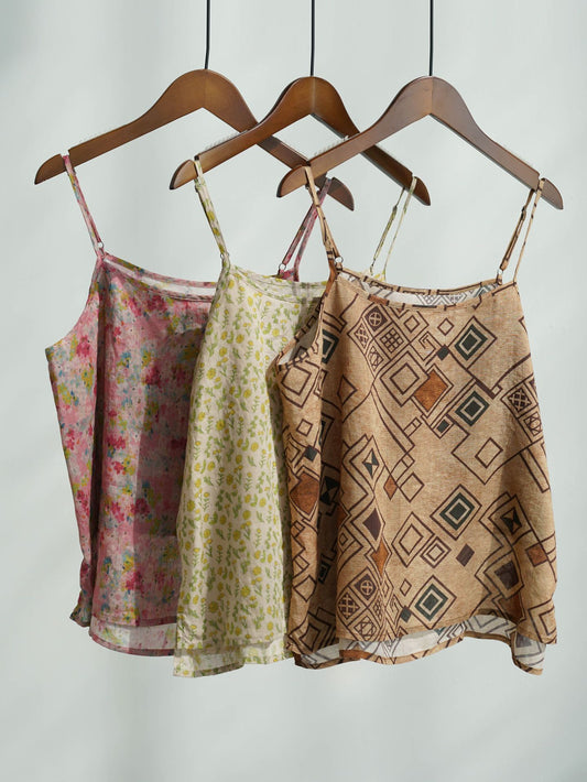 4色展開◇ボタニック&幾何学プリント コットン キャミソール◇