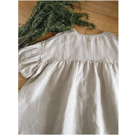 ☆レース×フリル装飾でコーデの主役に☆リネン ギャザー半袖 ブラウス☆