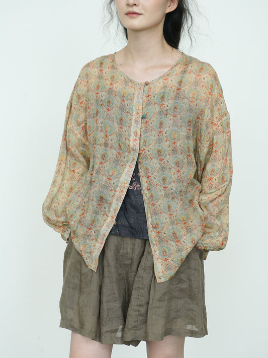 4色展開◇絶妙な色味のボタニックプリント◇ラミー ゆったりブラウス シャツ◇