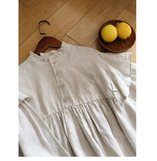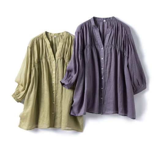 2色展開△たっぷりギャザーリネン ブラウス シャツ△