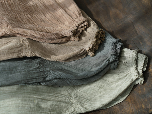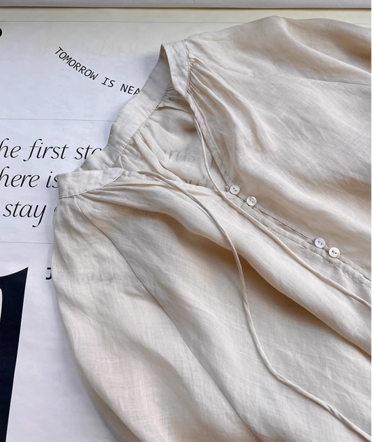 4色展開◇控えめなフリルネックが上品に◇リネンコットン ガーゼ プルオーバーシャツ◇