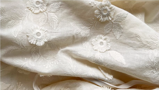 ◇コットン花柄刺繍 ゆったりフリルネック ブラウス◇