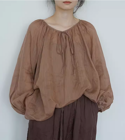 ◇たっぷりギャザー 上質ラミー使用 ゆったり ブラウス◇
