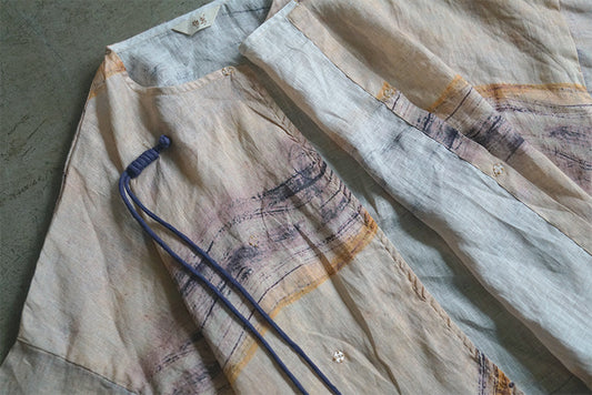 ◇上品なアブストラクトペイント◇リネンドロップショルダー プルオーバーシャツ◇