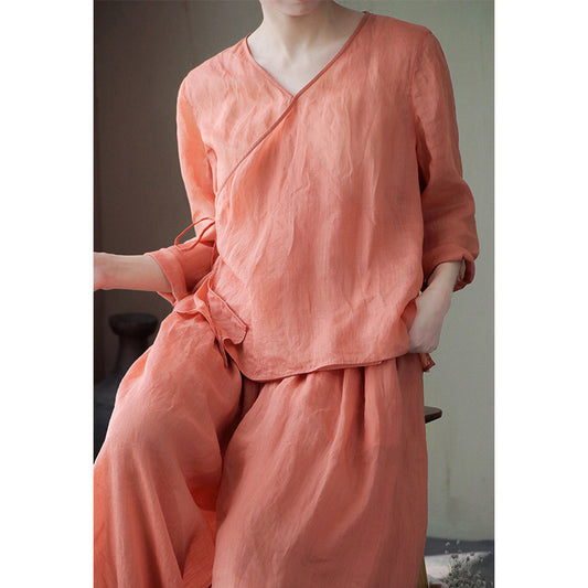 ◇ラミーカシュクールラップシャツ ◇ サーモンピンク