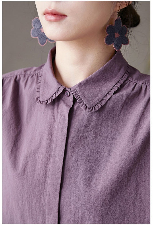 ✩コットンフリルデザイン ドロップショルダー 比翼シャツ✩