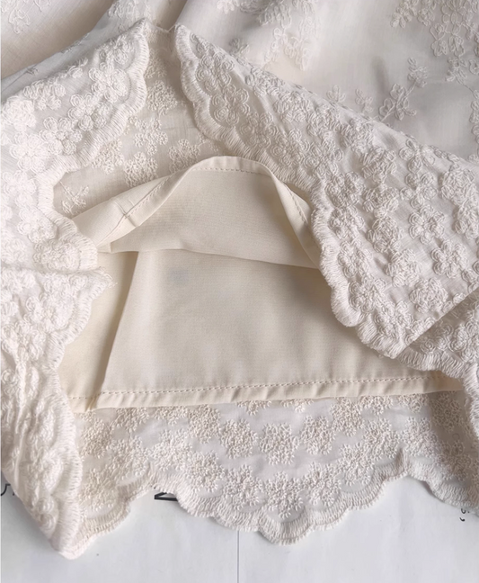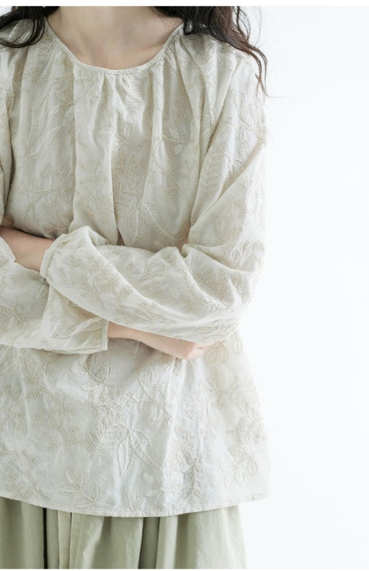 ◇花柄刺繍 コットン ドロップショルダー キナリ ブラウス◇