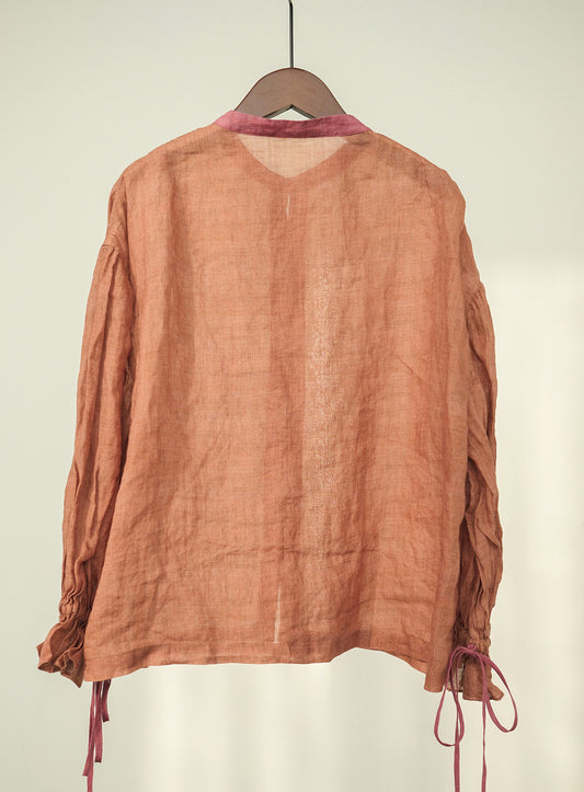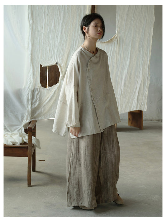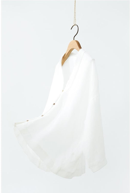 ◇ゆったりシルエット ノーカラーリネン シャツ◇