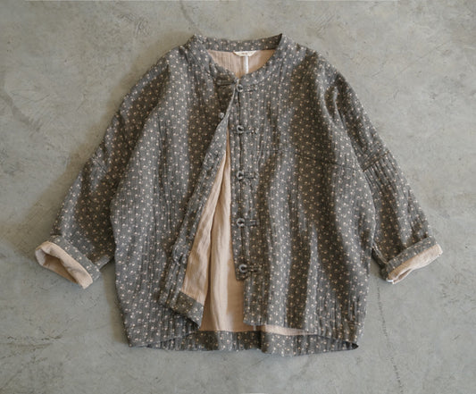 △スタンドカラー 小花柄オリエンタルデザイン ダブルフェイスコットン シャツジャケット△
