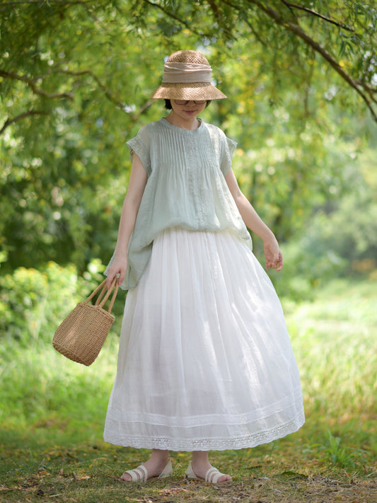 2色展開◇レース&ピンタック リネン ブラウス◇