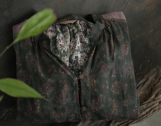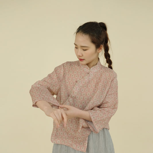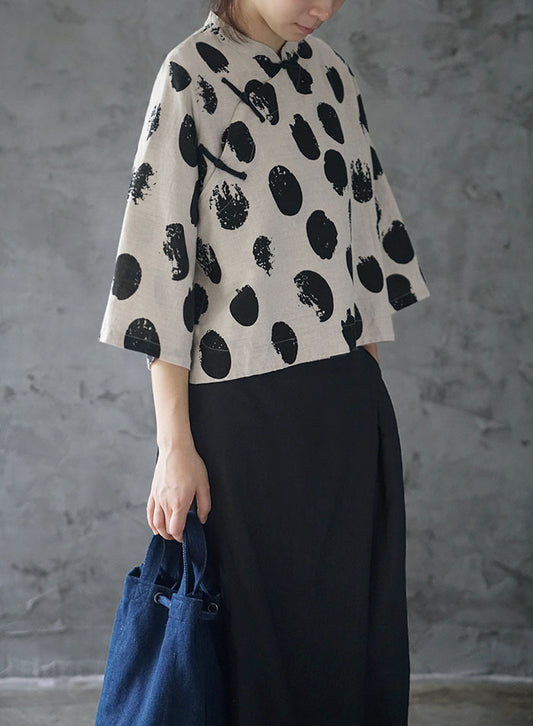 ◇ドットプリント オリエンタルデザイン リネン シャツ ブラウス ◇