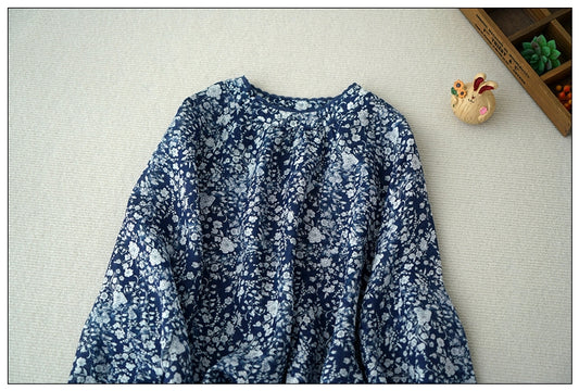 ◇ロングスリーブ フラワープリント コットンブラウス◇