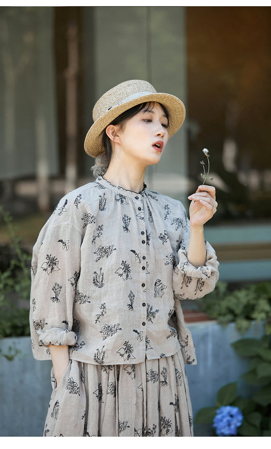 3色展開◇控えめな小花柄で品のあるデザイン◇ラミーシャツ◇