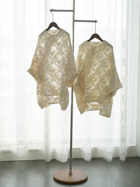 3色展開◇オリエンタルデザイン レース装飾 ドロップショルダー バンドカラー シャツ◇