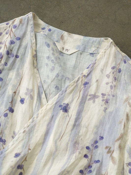 ◇水彩プリント&ドット柄◇ラミーカシュクールラップシャツ ◇