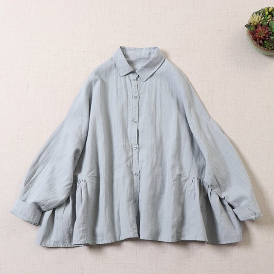 ◇3色展開◇ウエストギャザーリネン シャツ◇