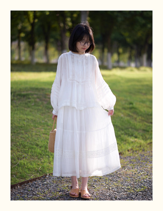 2色展開◇レース&たっぷりギャザー◇ラミー ブラウス&スカート◇