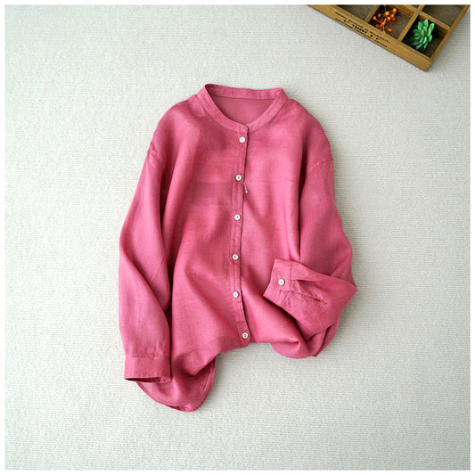 ◇3色展開◇ラミー バンドカラーゆったりシルエット ロングスリーブシャツ◇S/M/Lサイズ