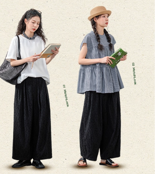ゆったりシルエット△コットンジャガードの面白い生地感 イージーパンツ▽