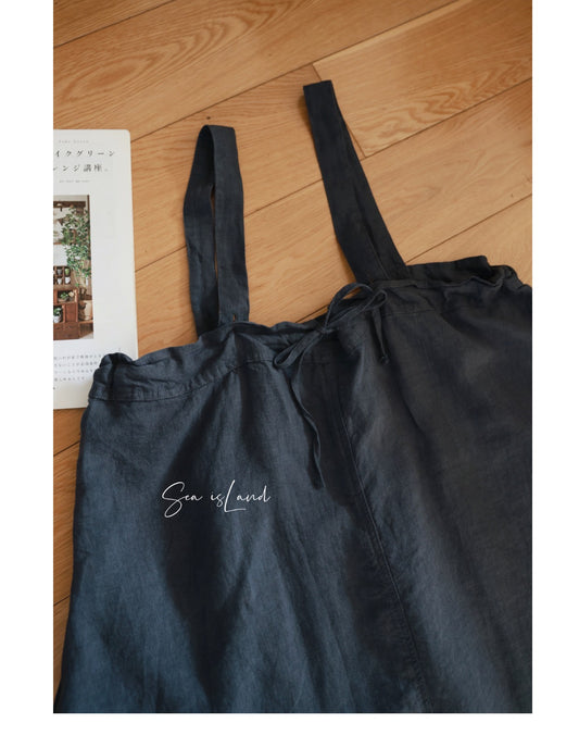 ◇裾フリル装飾もポイントに◇リネン ネイビーカラー ジャンパースカート ドレス ◇
