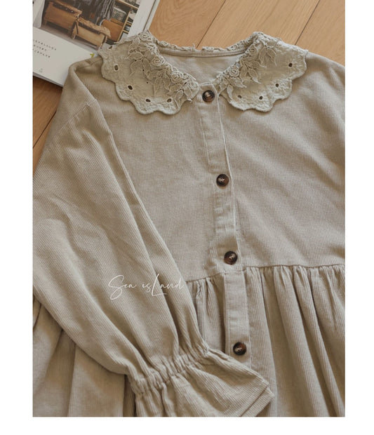 レース切替がポイントに△コットンコーデュロイ ワンピース△