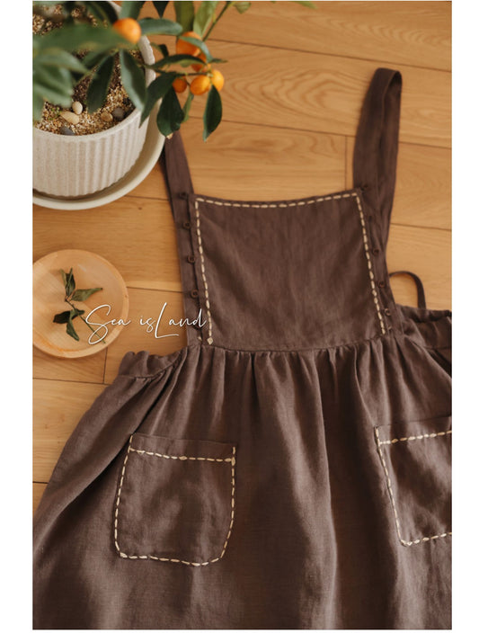 ◇ハンドステッチ&レース装飾 リネン エプロン◇