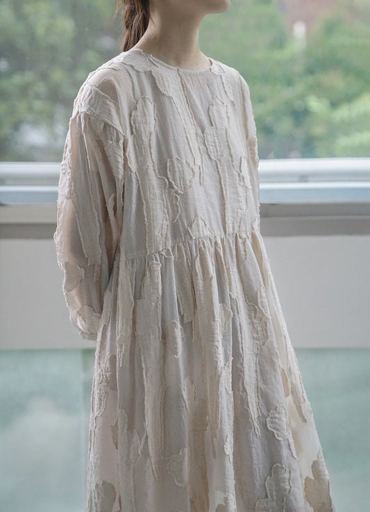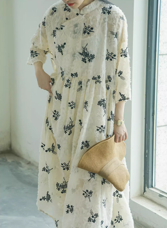 △デザインされた可愛い生地感&花柄刺繍 7部丈ワンピース△