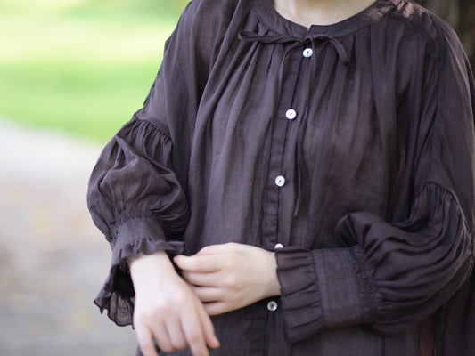 4色展開◇フリルネック&カフスの装飾がアクセントに◇ラミーロングシャツワンピース◇