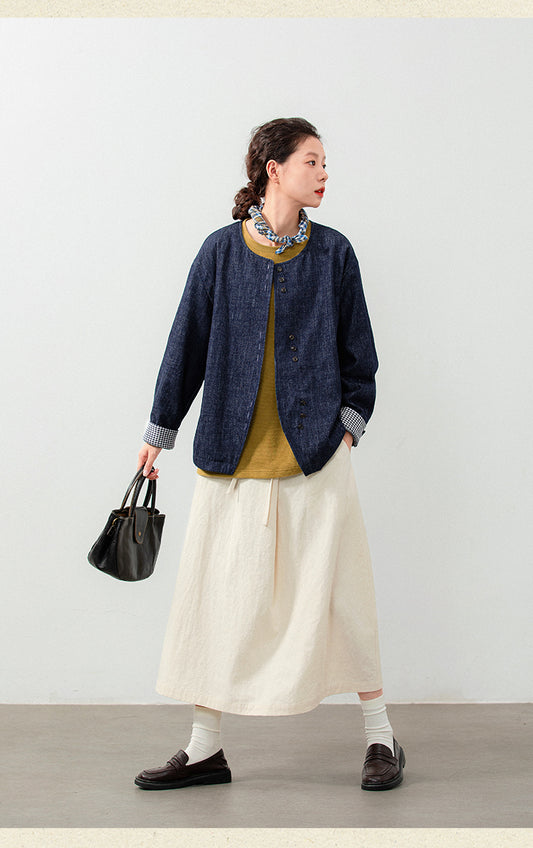 △程良いゆったりシルエット△デニム ノーカラーカバーオール ジャケット△