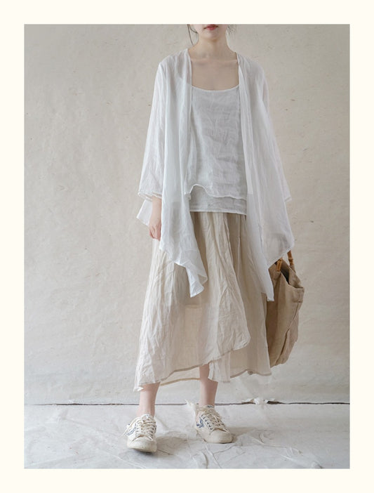 4色展開◇羽織るだけで様になる◇コットンリネン8分丈ロング丈羽織◇
