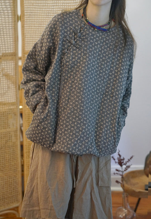 △淡い色味の小花柄◇オリエンタルデザイン 中綿 ジャケット◇
