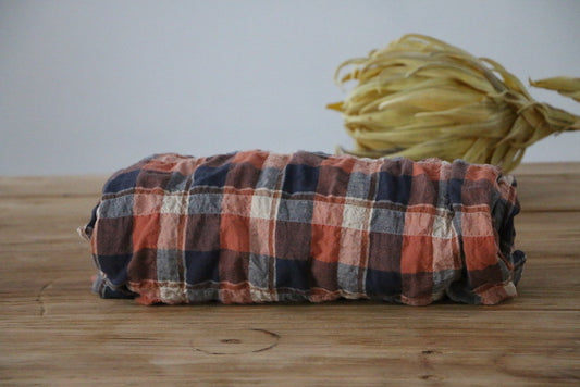 ◇可愛いチェック柄生地◇オリエンタルリネンワンピースドレス◇