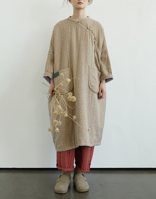 ◇可愛いドットプリント◇中綿生地で暖かドロップショルダーオリエンタル ワイドワンピースドレス◇