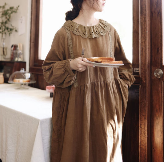 ☆フリルネック&ウエストギャザーゆったり細畝コーデュロイワンピース☆