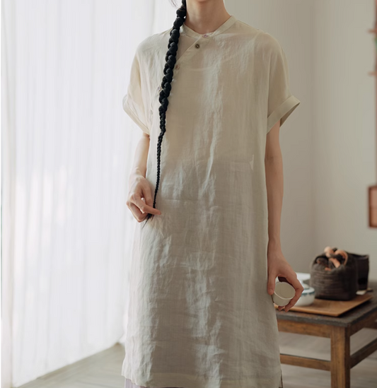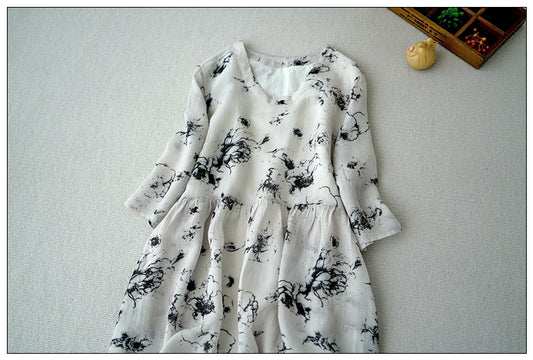 アブストラクトな水彩プリントが美しい◇ラミー苧麻100% ロングワンピース◇