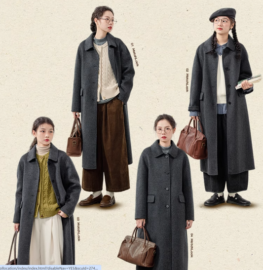 ダブルフェイスウールで裏地なしでも暖か△シャギーウール ステンカラーコート△