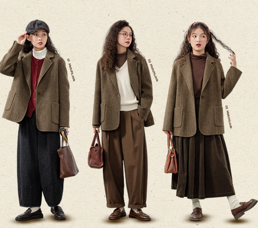 ジャストサイズで着て綺麗なシルエット△渋い色味のヘリンボーンウール100% 1つボタン テーラード ジャケット△