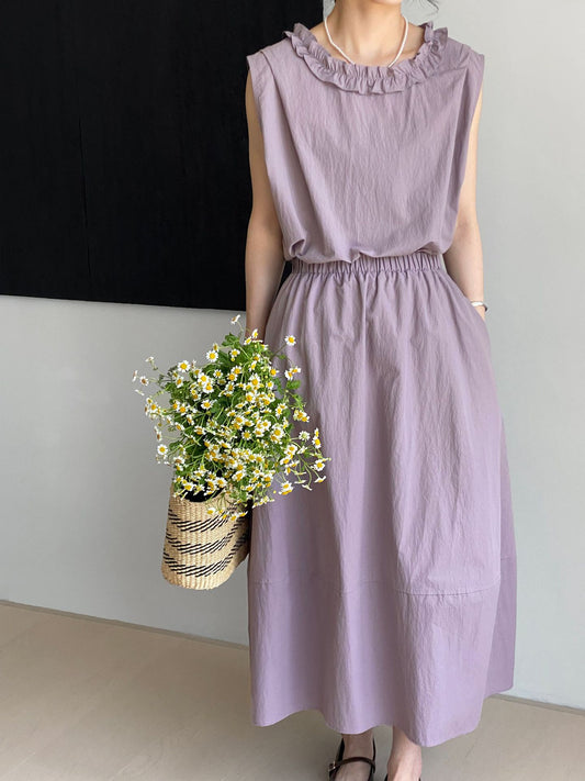 セットアップデザイン◇2色展開◇フリルネックブラウス&ロングスカート◇M/Lサイズ